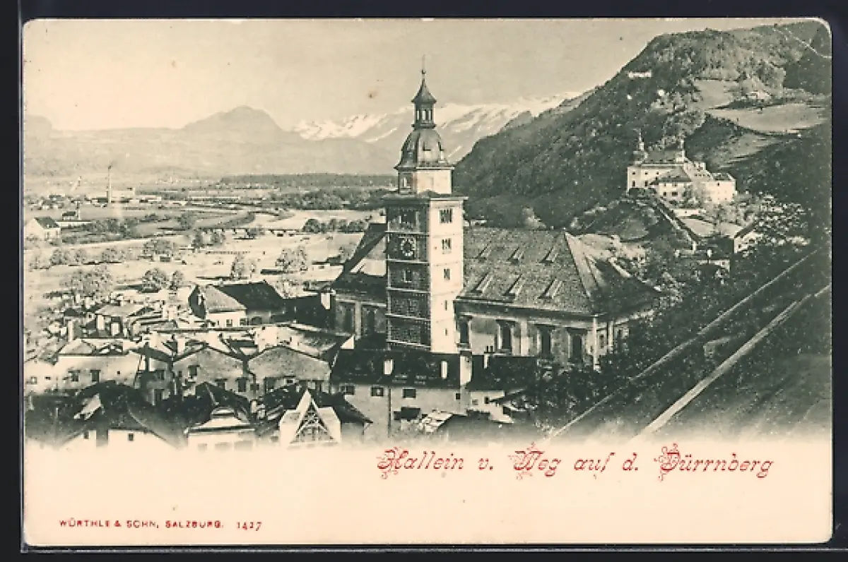 AK Hallein, Ortsansicht von dem Weg auf den Dürrnberg mit Kirche
