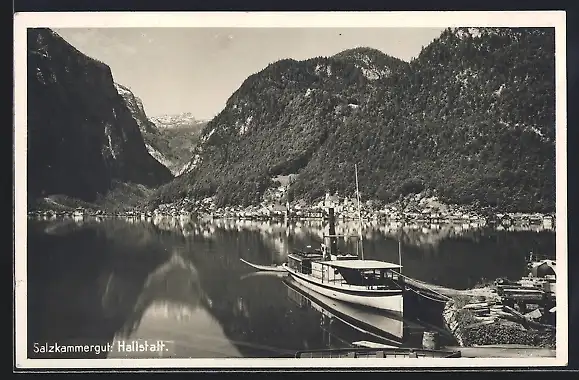 AK Hallstatt /Salzkammergut, Teilansicht mit Dampfer