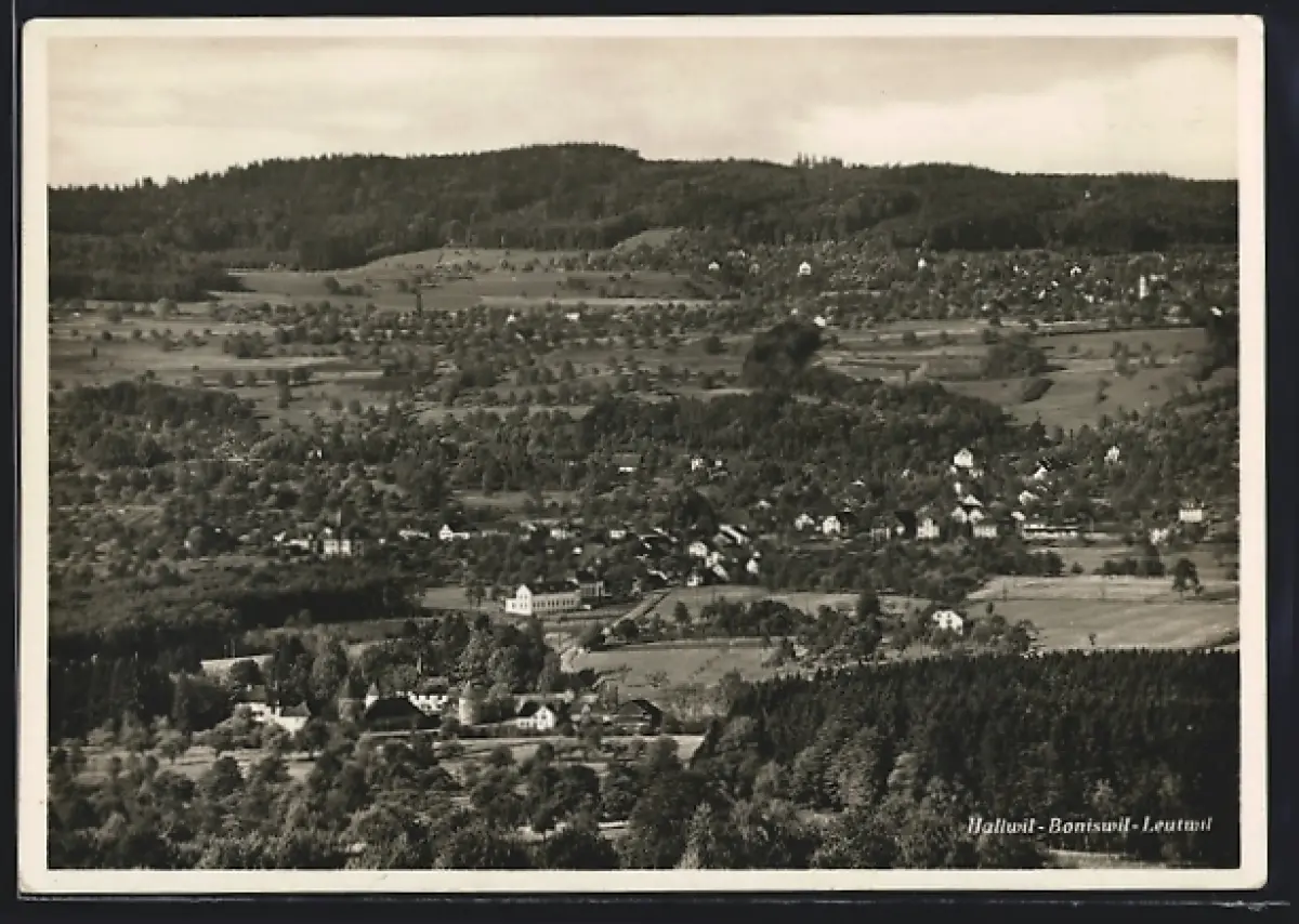 AK Hallwil, Ortsansicht aus der Vogelschau mit Boniswil und Leutwil