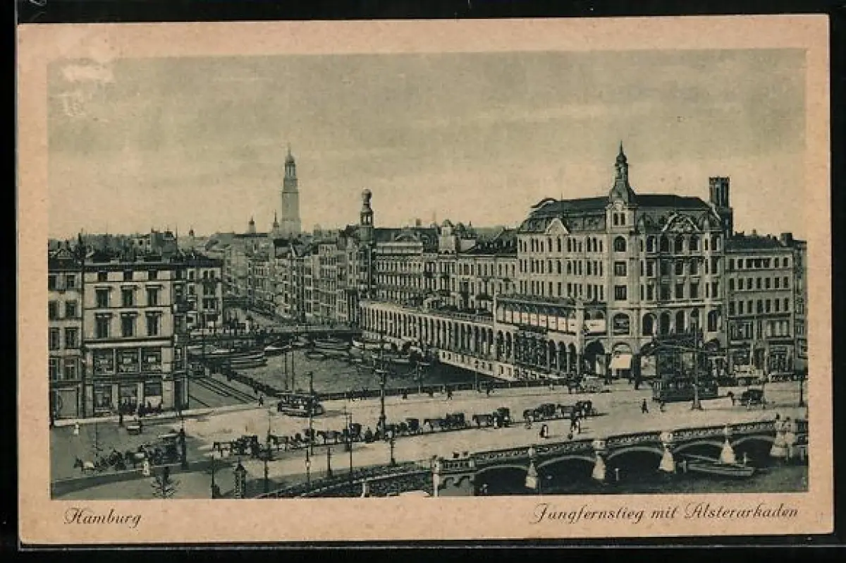 AK Hamburg, Alsterarkaden und Jungfernstieg mit Strassenbahn