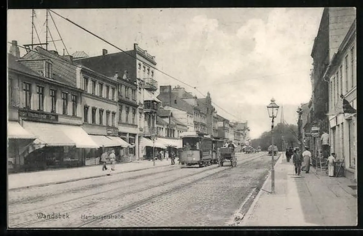 AK Hamburg-Barmbek, Hamburgerstrasse mit Strassenbahn