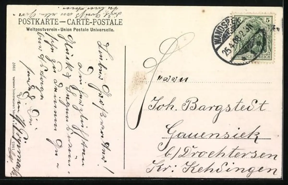 alte Ansichtskarte, gelaufen 1908, guter Zustand