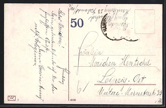alte Ansichtskarte, gelaufen, Briefmarke entfernt, guter Zustand