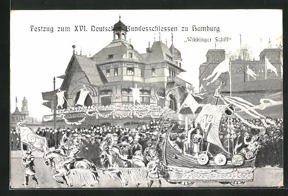 AK Hamburg, Festzug zum XVI. Deutschen Bundesschiessen 1909, Wikkinger Schiff