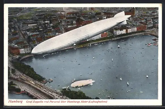 AK Hamburg, Graf Zeppelin und Parseval über der Alster