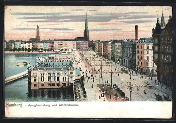 AK Hamburg, Jungfernstieg mit Alsterdamm