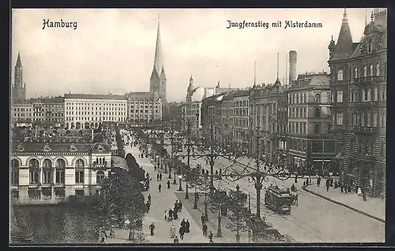 AK Hamburg, Jungfernstieg mit Alsterdamm, Strassenbahn