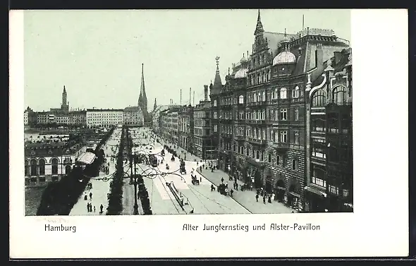 AK Hamburg-Neustadt, Alter Jungfernstieg und Alster-Pavillon