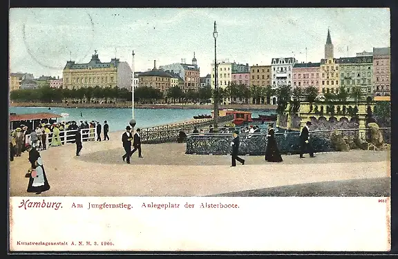 AK Hamburg-Neustadt, Anlegeplatz der Alsterboote am Jungfernstieg