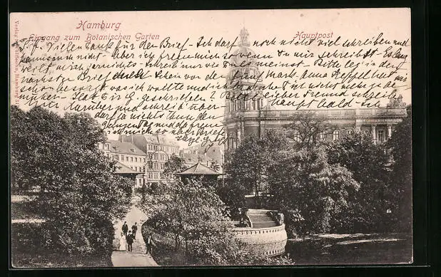AK Hamburg-Neustadt, Eingang zum Botanischen Garten und Hauptpost