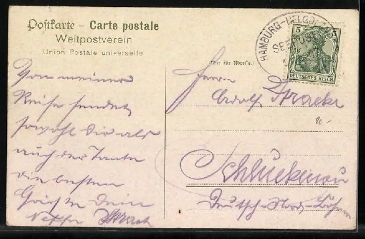 alte Ansichtskarte, gelaufen 1907, Eckknicke li. unten, minimaler Einriss re. oben, guter Zustand