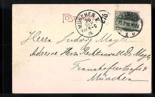 alte Ansichtskarte, gelaufen 1901, guter Zustand