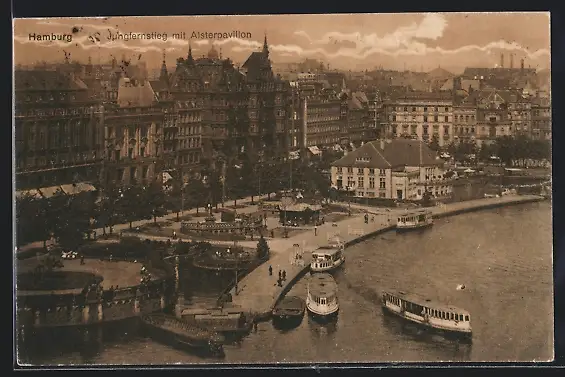 AK Hamburg-Neustadt, Jungfernstieg mit Alsterpavillion aus der Vogelschau