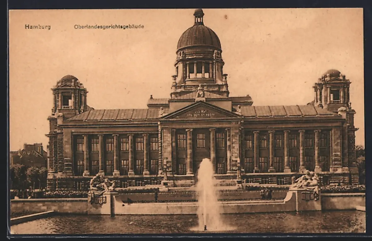 AK Hamburg-Neustadt, Oberlandesgerichtsgebäude mit Fontäne