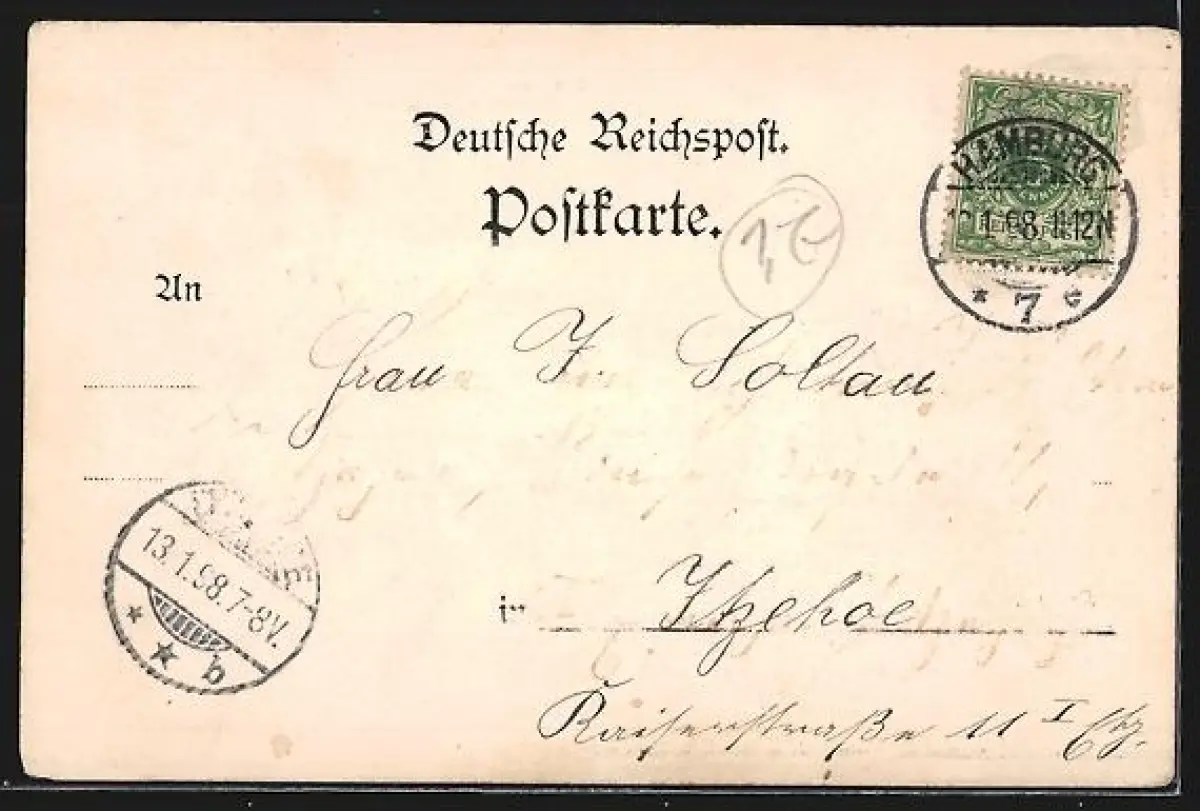 alte Ansichtskarte, gelaufen 1898, Stempelspur, Eckknick oben rechts, guter Zustand