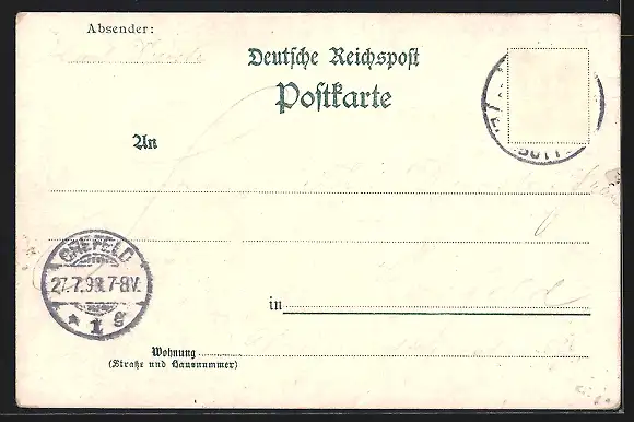 alte Ansichtskarte, gelaufen 1898, Briefmarke entfernt, guter Zustand