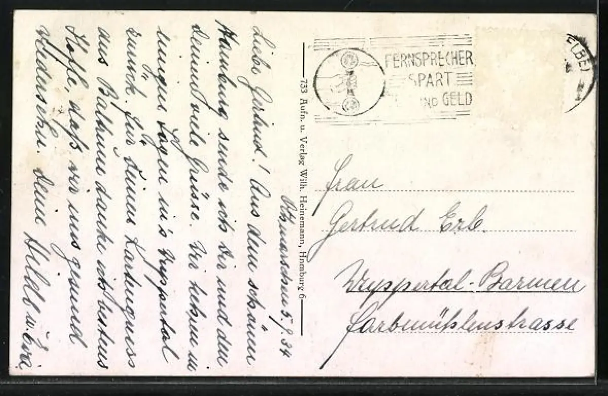 alte Ansichtskarte, gelaufen, Briefmarke entfernt, guter Zustand
