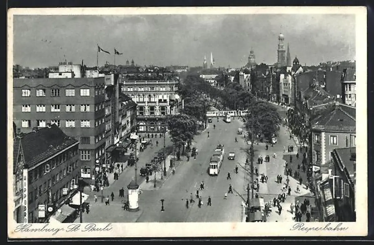 AK Hamburg-St. Pauli, Reeperbahn mit Strassenbahnen