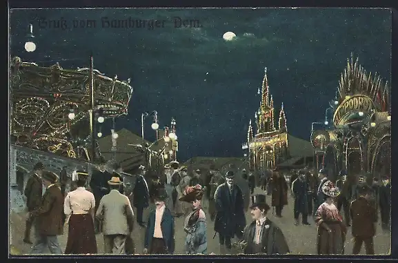 AK Hamburg-St.Pauli, Nächtliche Partie auf dem Hamburger Dom, Volksfest