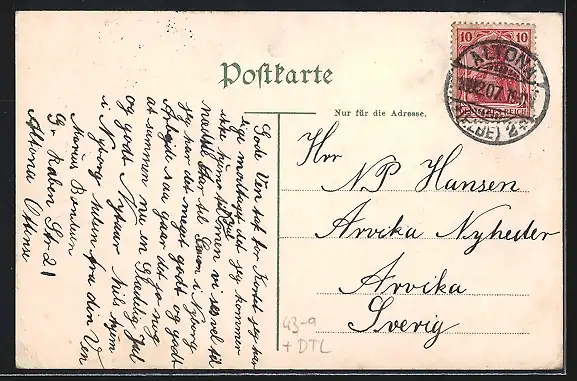 alte Ansichtskarte, gelaufen 1907, guter Zustand