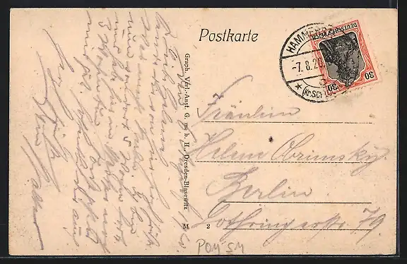 alte Ansichtskarte, gelaufen 1920, Eckknick re. oben, guter Zustand