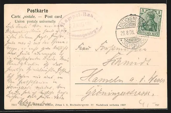 alte Ansichtskarte, gelaufen 1908, guter Zustand
