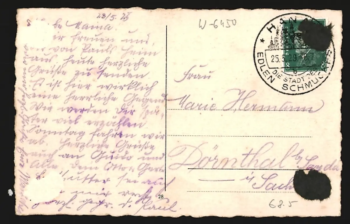 alte Ansichtskarte, gelaufen 1929, rückseitig Klebe- und Papierreste, guter Zustand