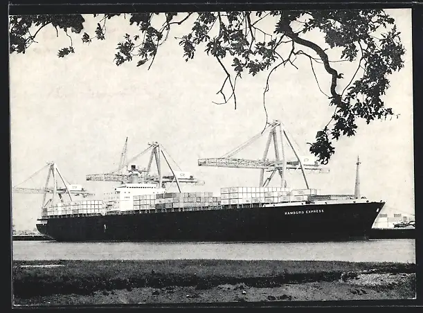 AK Handelsschiff Hamburg Express wird im Hafen beladen