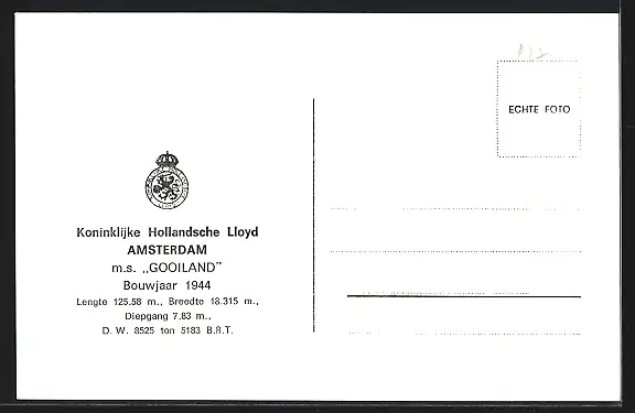 AK Handelsschiff M.S. Gooiland, Koninklijke Hollandsche Lloyd