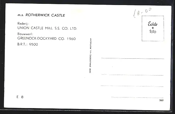 AK Handelsschiff M.S. Rotherwick Castle auf dem Meer, Union Castle Mail