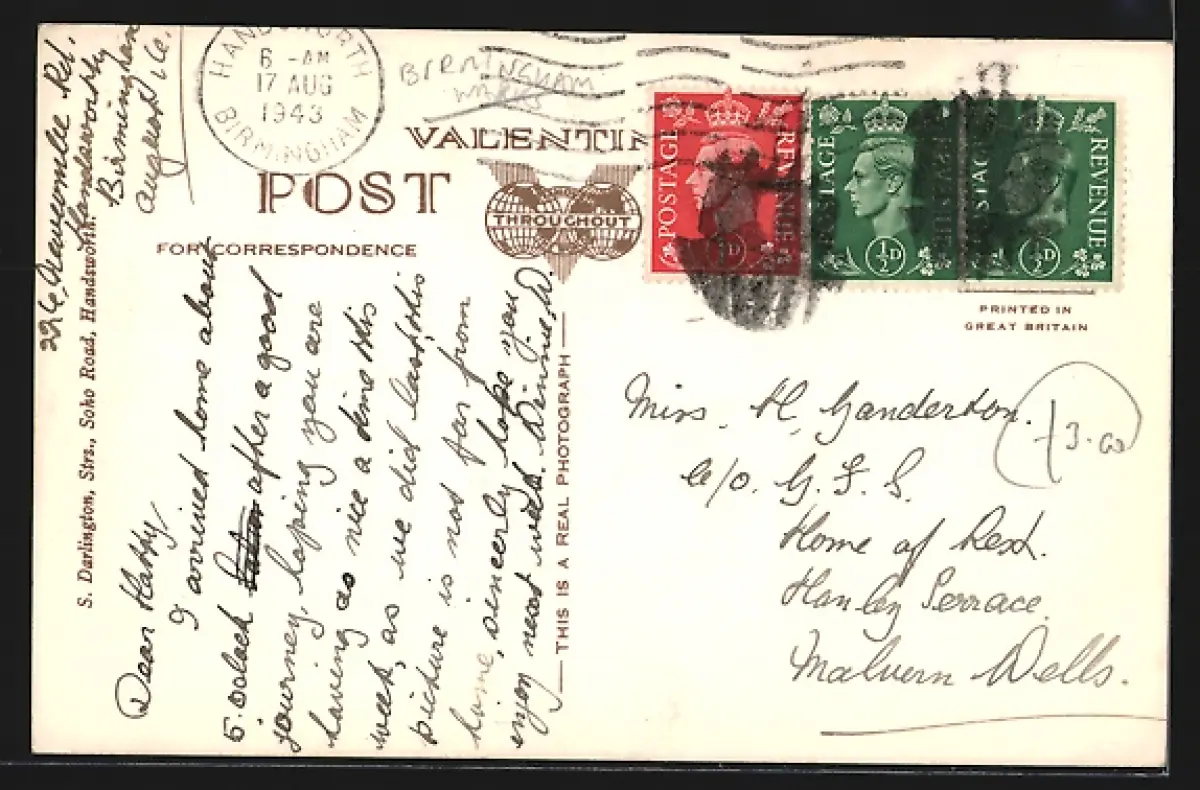 gelaufen 1943, kl. Eckknick rechts oben, guter Zustand