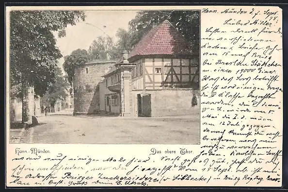 alte Ansichtskarte, gelaufen 1898, Eckknick li. oben, minimaler Eckschaden re. oben