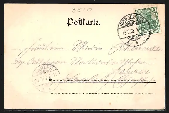 alte Ansichtskarte, gelaufen 1902, guter Zustand