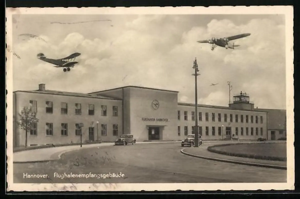 AK Hannover, Flugzeuge über dem Flughafenempfangsgebäude