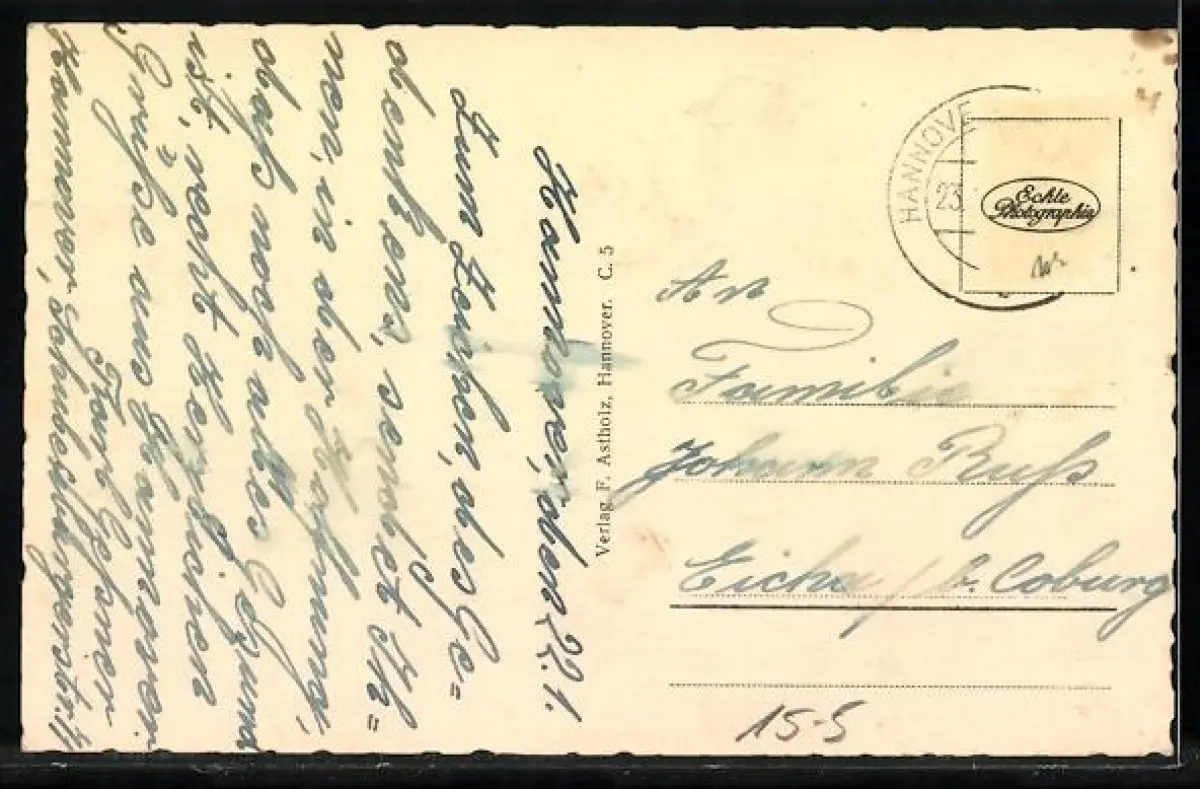 alte Ansichtskarte, gelaufen, Briefmarke entfernt, guter Zustand
