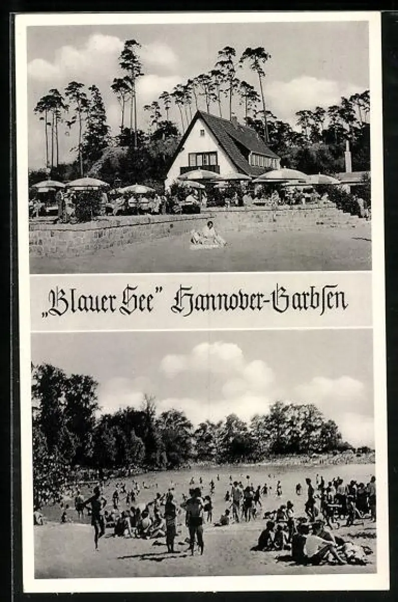 AK Hannover-Garbsen, Blauer See, Strandbad u. Auto-Rast-Gasthaus