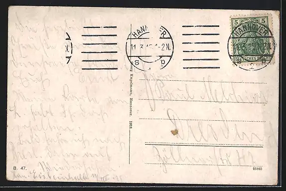 alte Ansichtskarte, gelaufen 1915, rückseitig Klebe- und Papierreste, guter Zustand