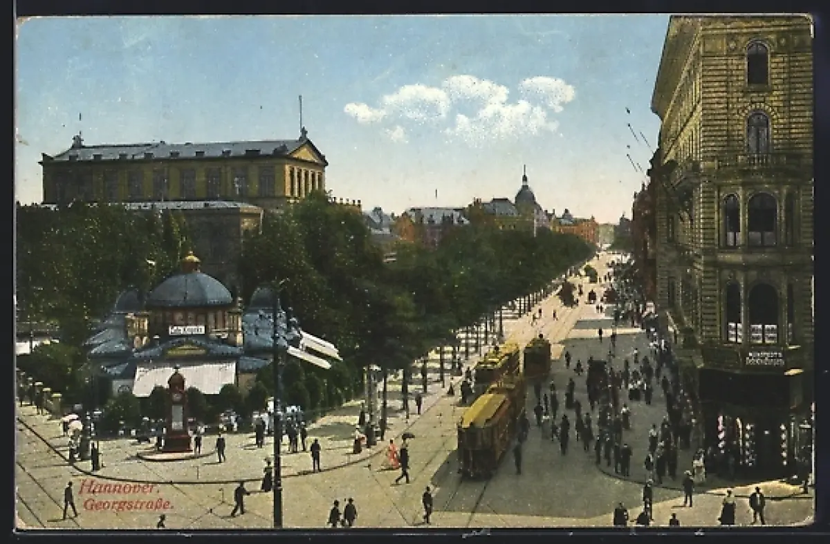 AK Hannover, Strassenbahn in der Georgenstrasse