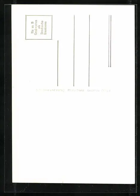 Personenbezogene Daten auf der Rückseite der Karte wurden durch blauen Textmarker unkenntlich gemacht. Die blauen Stellen sind auf die Vorderseite durchgeweicht und wirken sich negativ auf das Postkartenfoto aus
