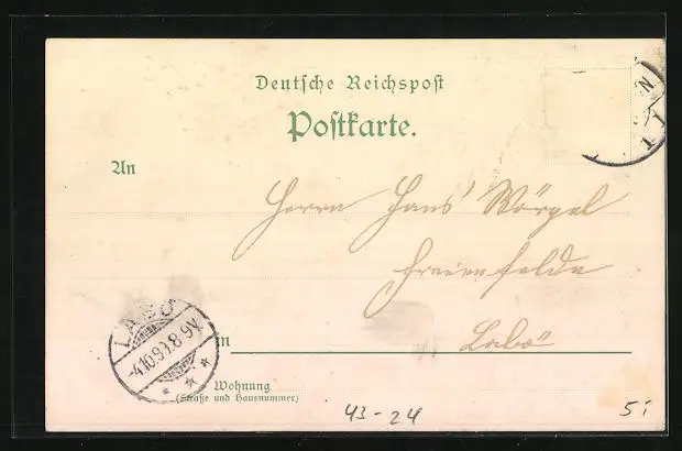 alte Ansichtskarte, gelaufen 1899, Briefmarke entfernt, guter Zustand