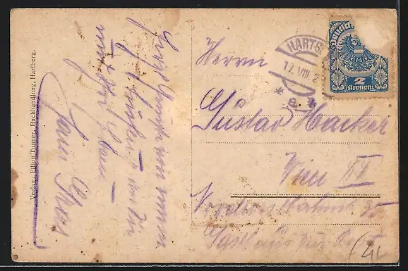 alte Ansichtskarte, gelaufen, Briefmarke entfernt, rückseitig Oberflächenschaden, Eckknick li. oben, guter Zustand
