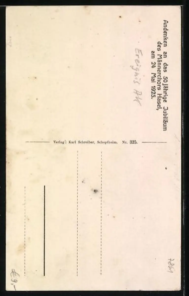 AK Hasel, 50-jähriges Jubiläum des Männerchors 1925, Festwagen mit verkleideten Personen