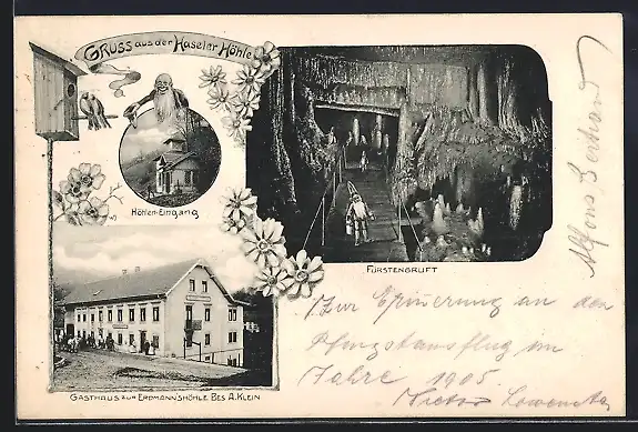 AK Hasel, Gasthaus zur Erdmann`shöhle, Inneres Fürstengruft, Eingang zur Haseler Höhle