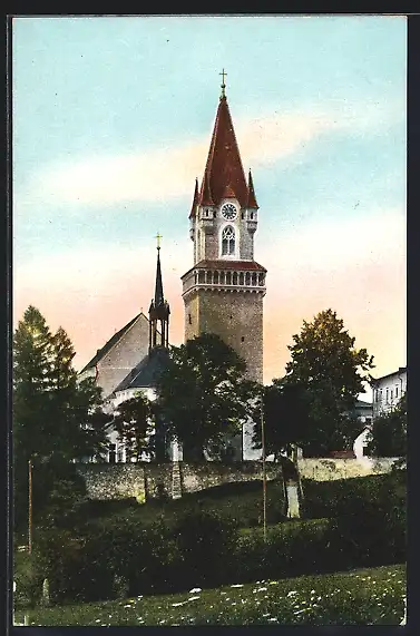 AK Haslach /Ob.-Öst., Blick zur Kirche