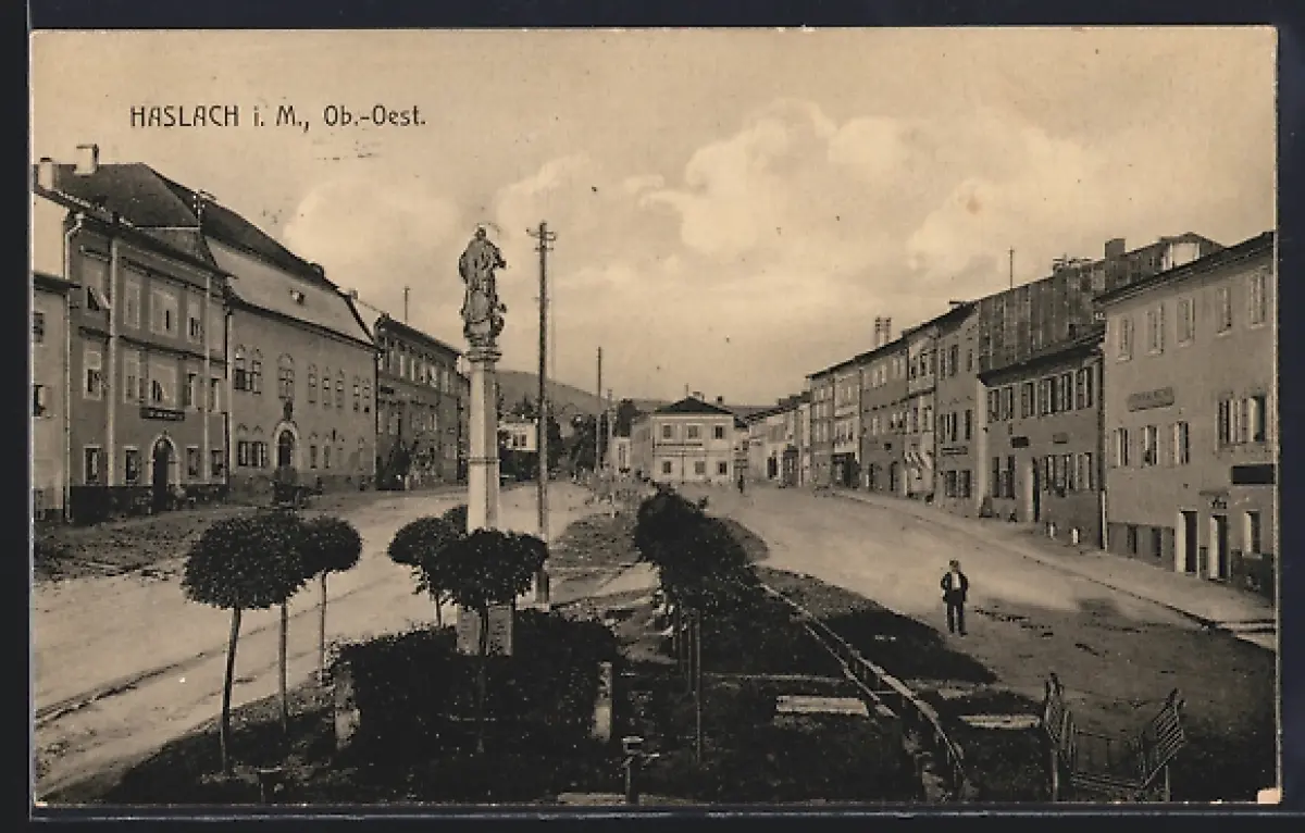 AK Haslach i. M., Platzpartie mit Säulendenkmal-Anlage
