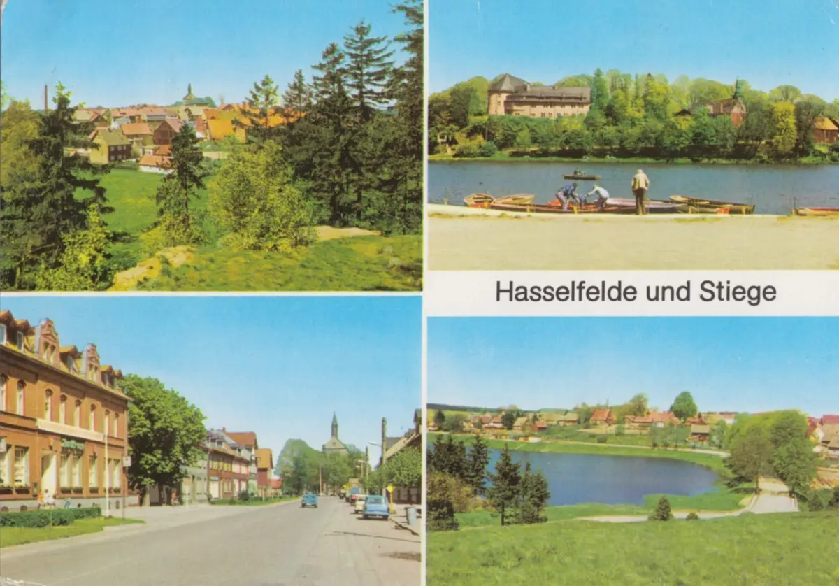 Ansichtskarte Hasselfelde und Stiege Harz vier Abb. Erhaltung I-II, Beförderungsspuren postalisch gelaufen, gestempelt: 15.9.80 Druckvermerk: 1980 Herstellungsland: DDR Verlag: VEB Bild und Heimat, Reichenbach i. V. - 01 07 0084