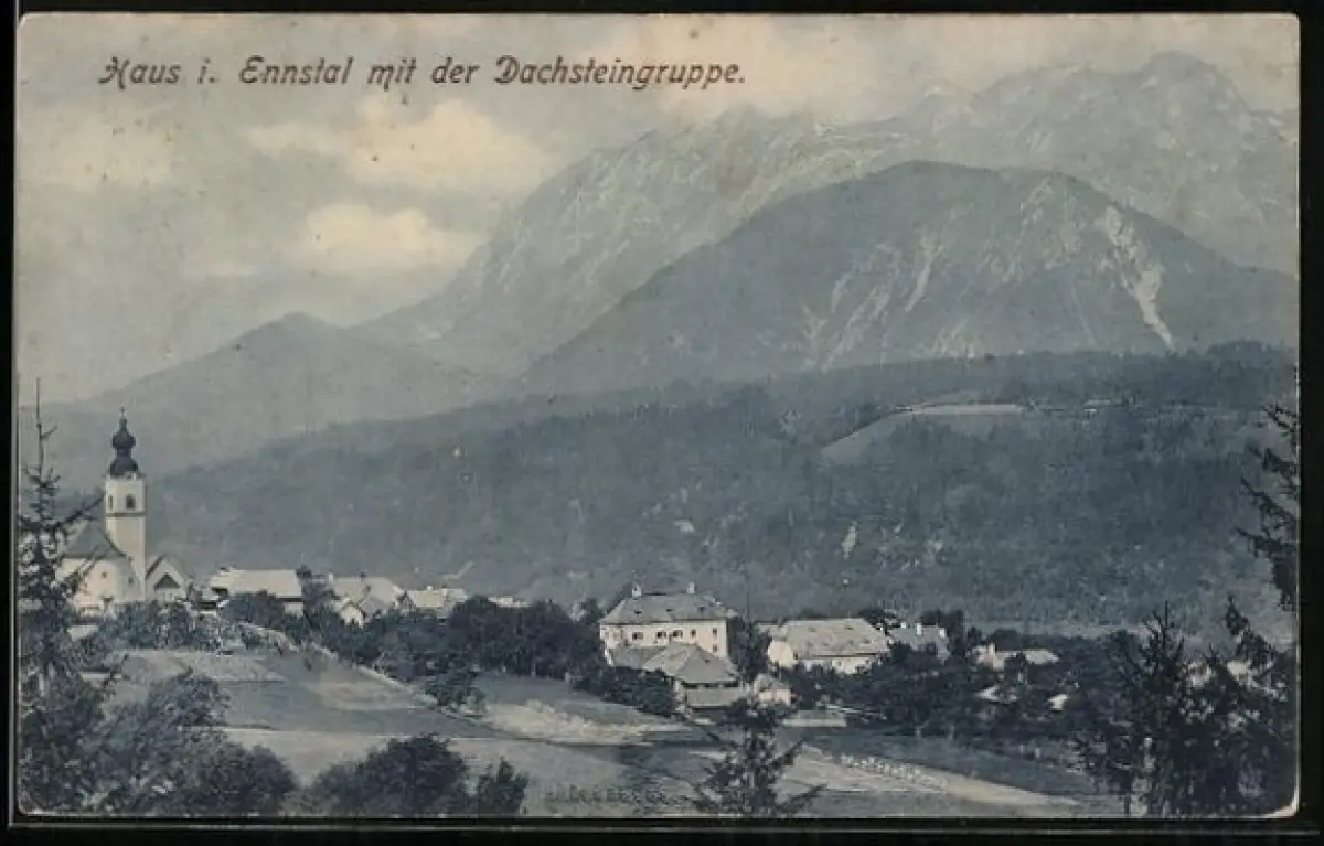 AK Haus, Ortsansicht mit der Dachsteingruppe