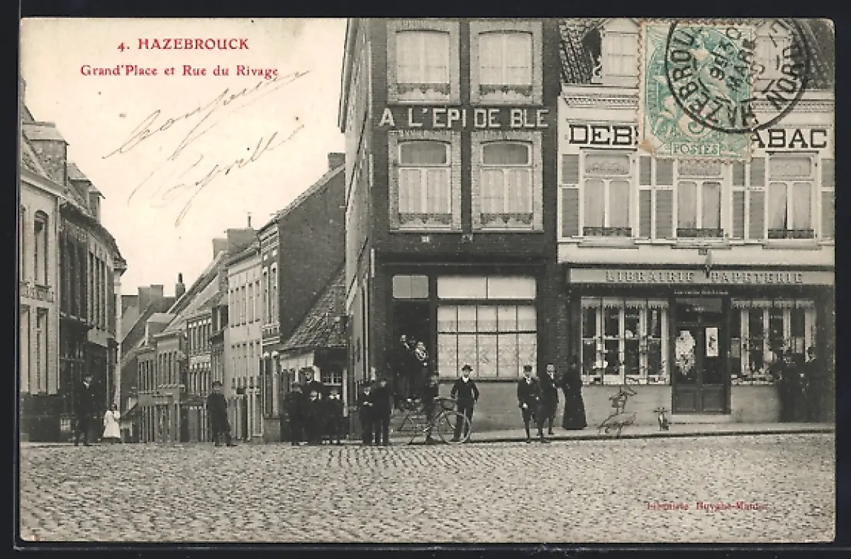 AK Hazebrouck, Grand`Place et Rue du Rivage avec commerces et passants