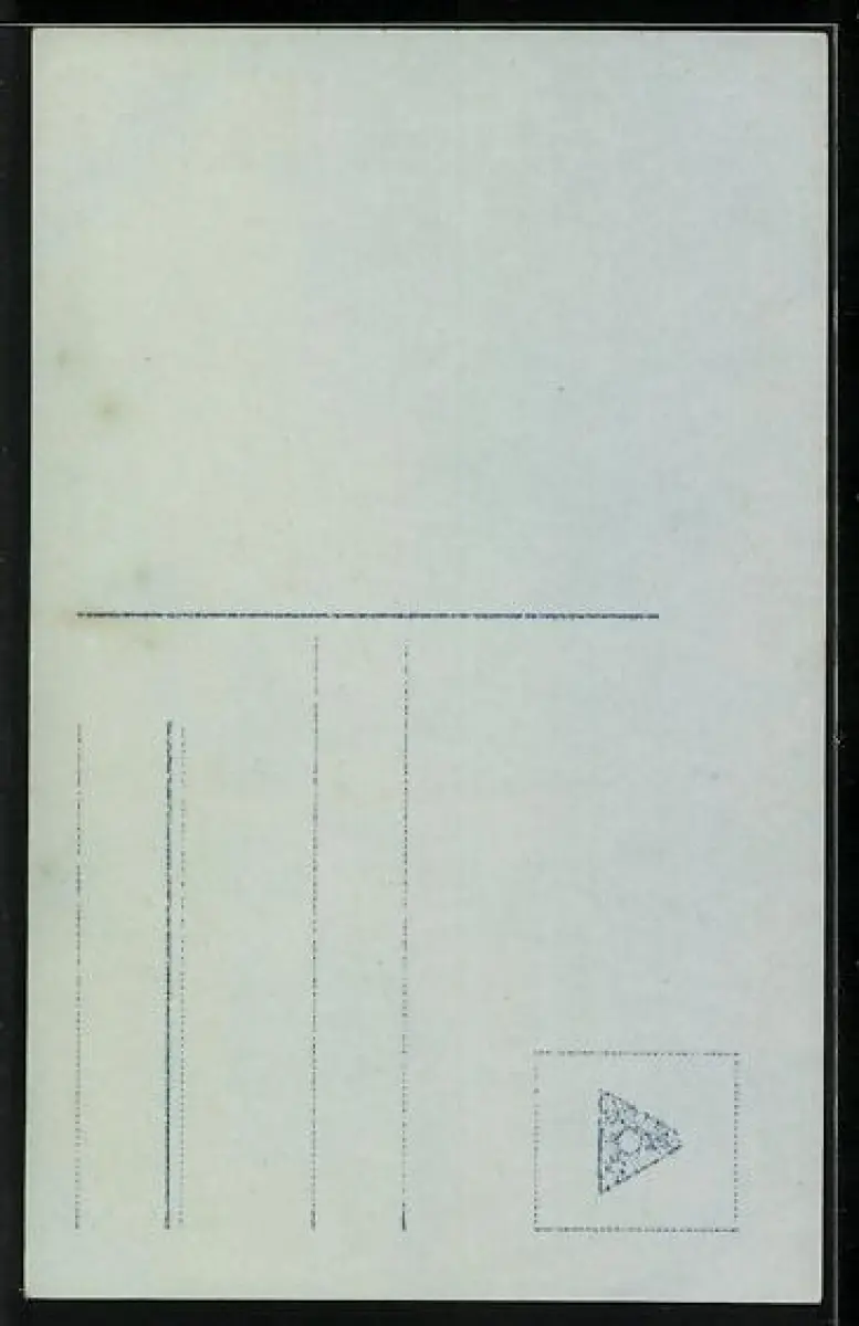 Personenbezogene Daten auf der Rückseite der Karte wurden durch blauen Textmarker unkenntlich gemacht. Die blauen Stellen sind auf die Vorderseite durchgeweicht und wirken sich negativ auf das Postkartenfoto aus