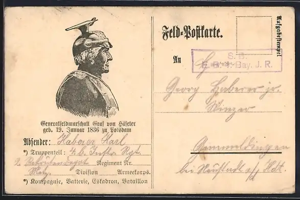 AK Heerführer Generalfeldmarschall Graf von Häseler, Geb. 1836